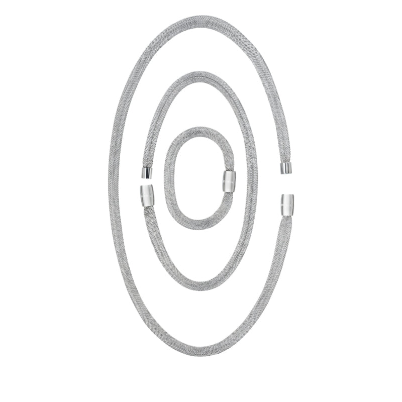 Magnetica System è la collezione di gioielli che, grazie ai suoi diversi elementi e alle chiusure magnetiche, può essere modificata e assumere forme e stili sempre diversi. Soft Set è composto da tre moduli di diverse lunghezze in acciaio lucido, caratterizzati da una maglia leggera e avvolgente. Il set può essere indossato completo, separato nei singoli elementi o abbinato ad ogni altro elemento della collezione. Scopri nella photo gallery i diversi modi di indossare il gioiello.