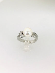 ANELLO CON PERLA E BRILLANTI SU ORO BIANCO AE049