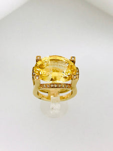 ANELLO CON DIAMANTI E CITRINO SU ORO GIALLO FG630