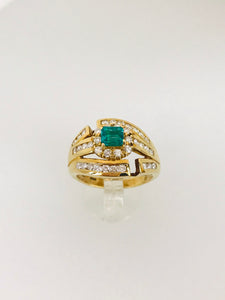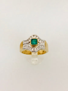 ANELLO SMERALDO DIAMANTI ORO GIALLO E BIANCO