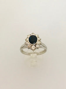 ANELLO SOLITARIO ZAFFIRO DIAMANTI ORO BIANCO