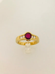 ANELLO SOLITARIO RUBINO DIAMANTI ORO GIALLO