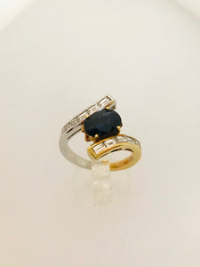 ANELLO CONTRARIE ZAFFIRO DIAMANTI ORO GIALLO E BIANCO