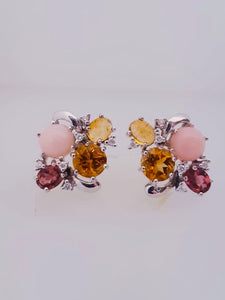 ORECCHINI FANTASIA DIAMANTI E PIETRE DURE ORO BIANCO