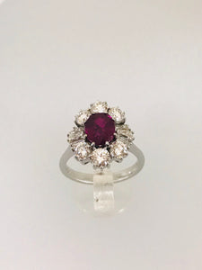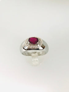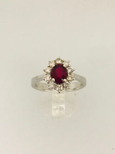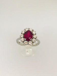 ANELLO SOLITARIO RUBINO DIAMANTI ORO BIANCO