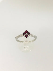 ANELLO FANTASIA FIORE RUBINI DIAMANTI ORO BIANCO