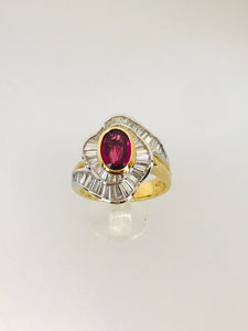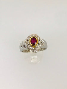 ANELLO FANTASIA RUBINO DIAMANTI ORO BIANCO E GIALLO