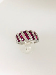 ANELLO FASCIA RUBINO DIAMANTI ORO BIANCO