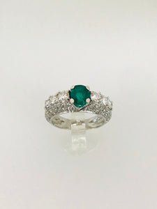 ANELLO SMERALDO DIAMANTI ORO BIANCO