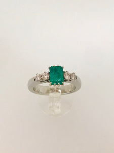 ANELLO SOLITARIO SMERALDO DIAMANTI ORO BIANCO