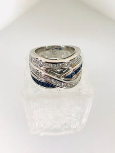 ANELLO FASCIA DIAMANTI ZAFFIRI ORO BIANCO