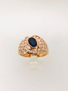 ANELLO FANTASIA DIAMANTI ZAFFIRO ORO GIALLO DORATO ROSA