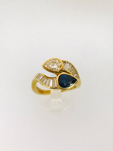 ANELLO CONTRARIE DIAMANTI ZAFFIRO ORO GIALLO