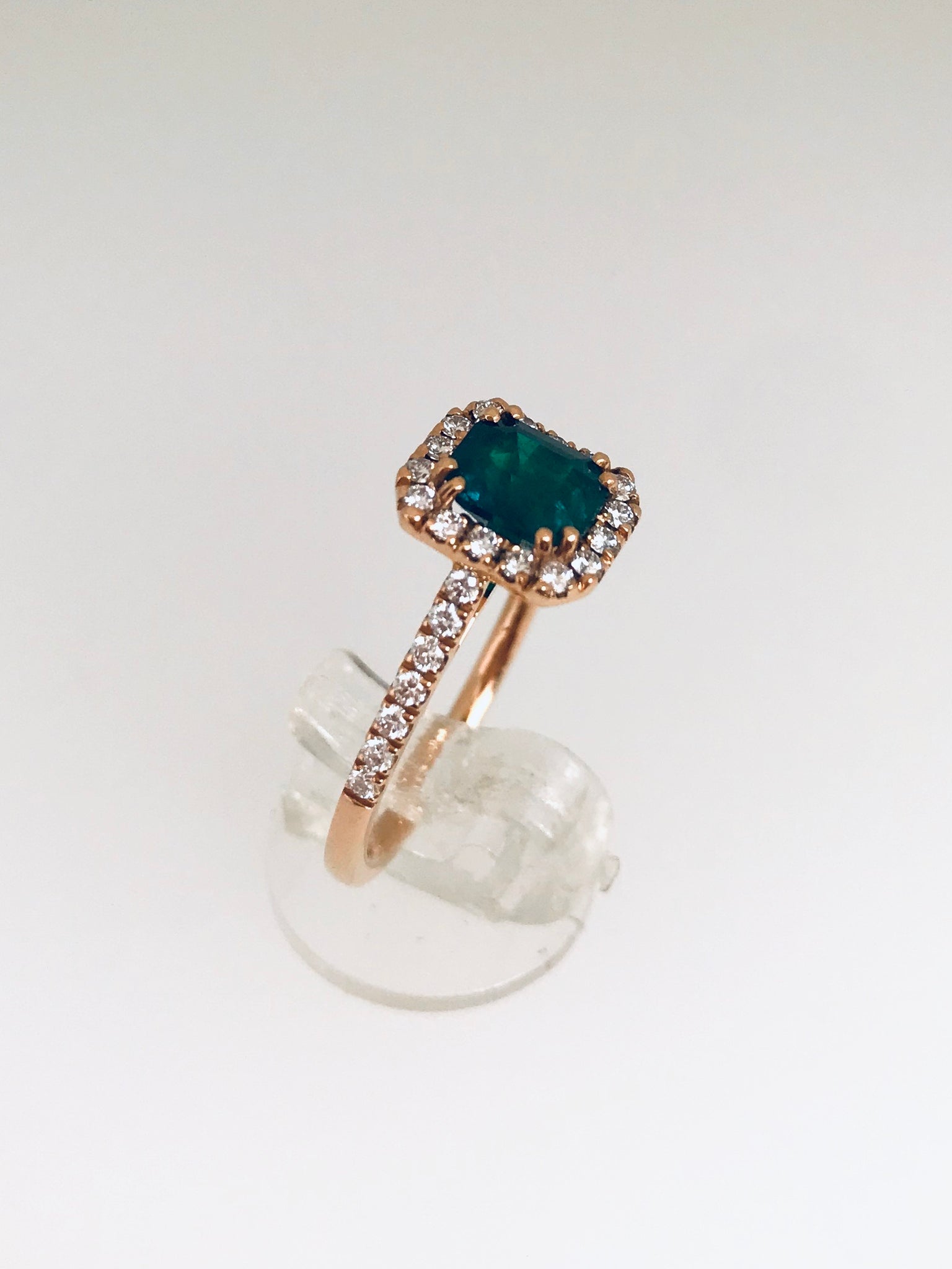 Anello con smeraldo colombiano e diamanti su oro rosa, Bogotà collection.
